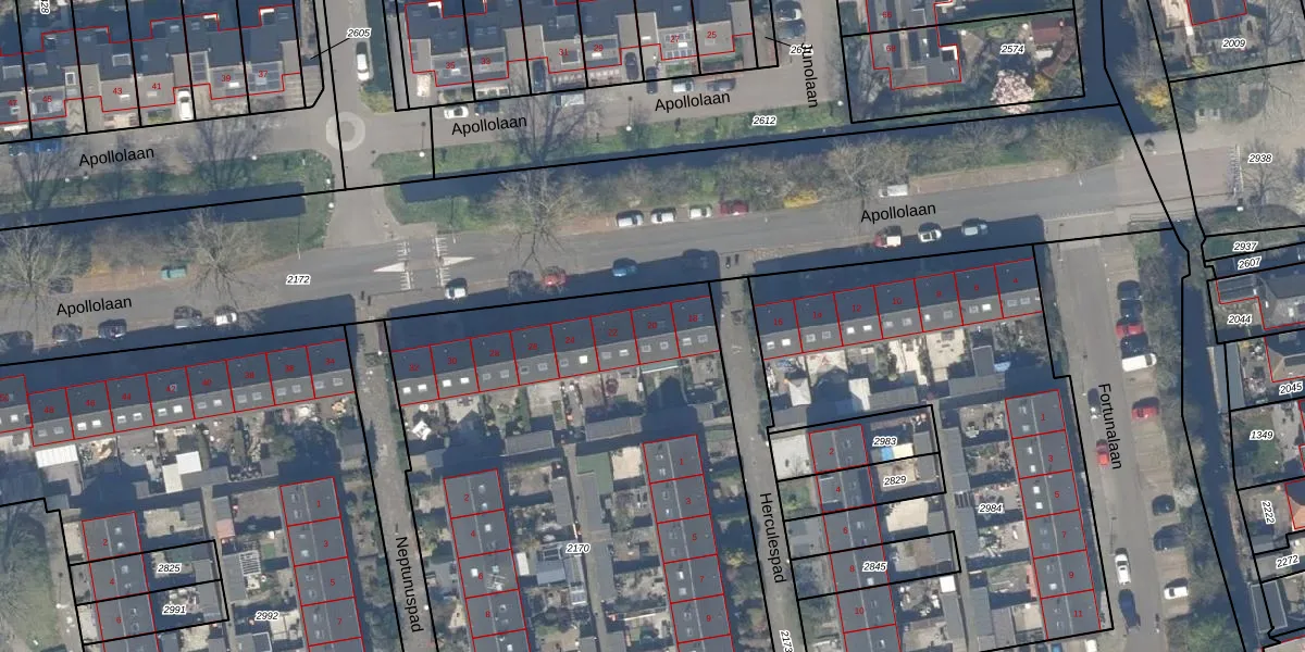 Apollolaan 20 is gelegen op kadastraal perceel WDV01F2170. Deze kadastrale aanduiding is uniek en wordt gebruikt door het Kadaster om eigendomsrechten en andere zakelijke rechten vast te leggen. Het perceel maakt onderdeel uit van de kadastrale gemeente Waddinxveen.