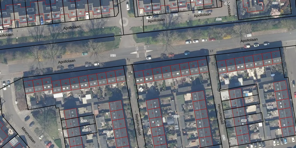 Apollolaan 30 is gelegen op kadastraal perceel WDV01F2170. Deze kadastrale aanduiding is uniek en wordt gebruikt door het Kadaster om eigendomsrechten en andere zakelijke rechten vast te leggen. Het perceel maakt onderdeel uit van de kadastrale gemeente Waddinxveen.