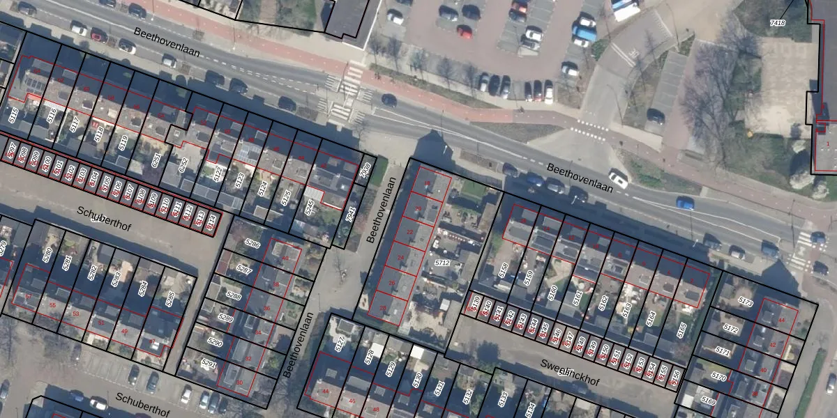 Beethovenlaan 20 is gelegen op kadastraal perceel WDV01B5712. Deze kadastrale aanduiding is uniek en wordt gebruikt door het Kadaster om eigendomsrechten en andere zakelijke rechten vast te leggen. Het perceel maakt onderdeel uit van de kadastrale gemeente Waddinxveen.