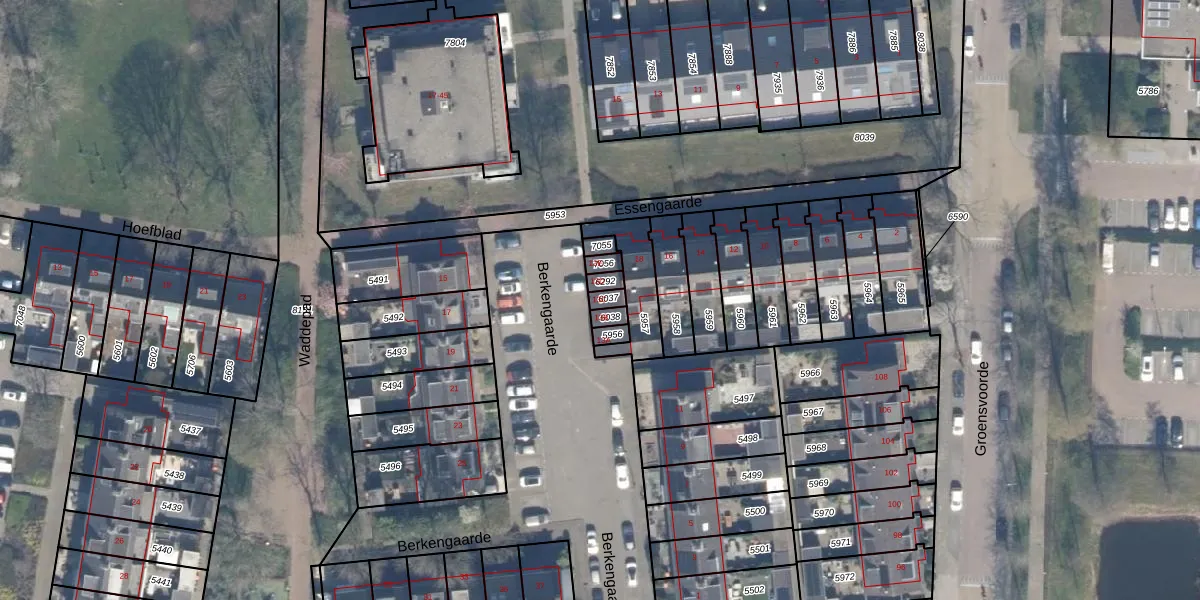 Gebruik de zoekbalk of klik op een perceel voor informatie over de adressen binnen dit perceel.