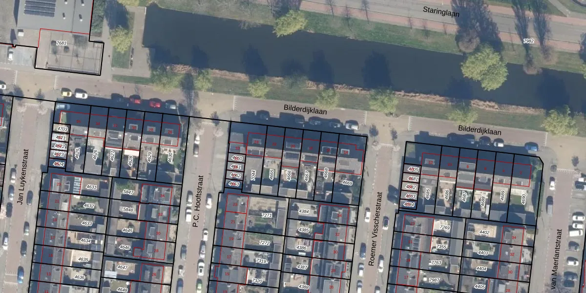 Gebruik de zoekbalk of klik op een perceel voor informatie over de adressen binnen dit perceel.