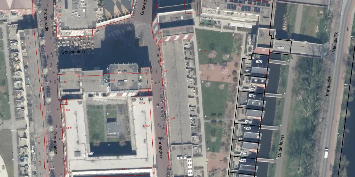 Het adres ligt op het perceel WDV01-D-3557, dat zich in de kadastrale gemeente Waddinxveen bevindt. Het perceel is met 3,1 ha relatief groot. Het gemiddelde ligt in de kadastrale gemeente Waddinxveen op 2160,72 m². Het kleinste perceel in de kadastrale gemeente is 0 m² groot. De grootste perceeloppervlakte is 49,8 ha. Op het perceel zijn 316 adressen aanwezig. De huidige grenzen van het perceel zijn digitaal in de Basisregistratie Kadaster (BRK) geregistreerd op 11-12-2025.