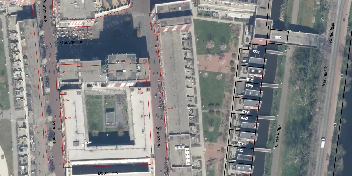Het adres ligt op het perceel WDV01-D-3557, dat zich in de kadastrale gemeente Waddinxveen bevindt. Het perceel is met 3,1 ha relatief groot. Het gemiddelde ligt in de kadastrale gemeente Waddinxveen op 2160,88 m². Het kleinste perceel in de kadastrale gemeente is 0 m² groot. De grootste perceeloppervlakte is 49,8 ha. Op het perceel zijn 316 adressen aanwezig. De laatste wijziging in het de Basisregistratie Kadaster (BRK) was op 11-12-2025.