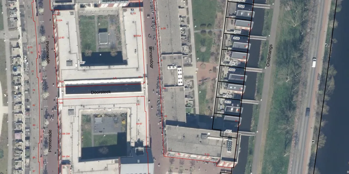 Het adres ligt op het perceel WDV01-D-3557, dat zich in de kadastrale gemeente Waddinxveen bevindt. Het perceel is met 3,1 ha relatief groot. Het gemiddelde ligt in de kadastrale gemeente Waddinxveen op 2160,88 m². Het kleinste perceel in de kadastrale gemeente is 0 m² groot. De grootste perceeloppervlakte is 49,8 ha. Op het perceel liggen in totaal 316 adressen. In de Basisregistratie Kadaster (BRK) werden de grenzen van het perceel geregistreerd op 11-12-2025.