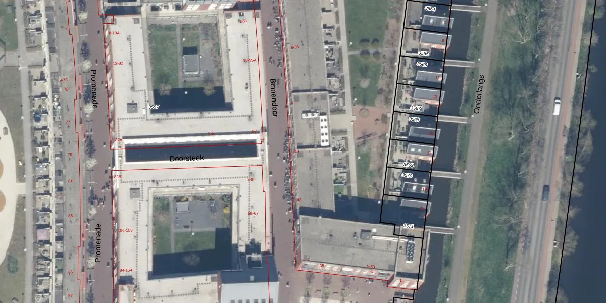 Het adres ligt op het perceel WDV01-D-3557, dat zich in de kadastrale gemeente Waddinxveen bevindt. Het perceel is met 3,1 ha relatief groot. Het gemiddelde ligt in de kadastrale gemeente Waddinxveen op 2160,88 m². Het kleinste perceel in de kadastrale gemeente is 0 m² groot. De grootste perceeloppervlakte is 49,8 ha. Op het perceel liggen in totaal 316 adressen. De laatste wijziging in het de Basisregistratie Kadaster (BRK) was op 11-12-2025.