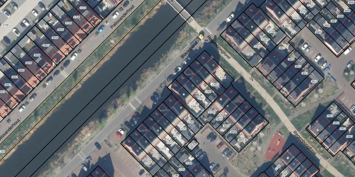Het perceel waarop Blauwband 90 staat heeft een oppervlakte van 176 m². Dit is een middelgroot perceel. De perceeloppervlakte wordt geregistreerd door het Kadaster. Gedetailleerde informatie over de maten van dit perceel kunt u vinden in het rapport Kadastrale kaart met maatvoering van Blauwband 90.