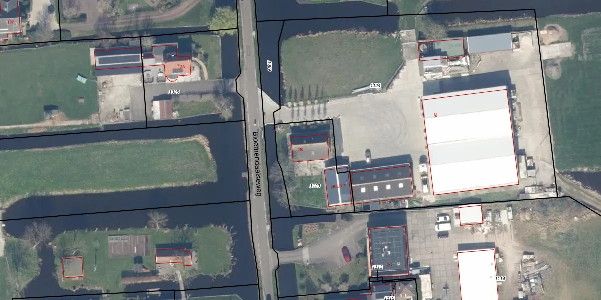 Bloemendaalseweg 2-B is gelegen op kadastraal perceel WDV01I1123. Deze kadastrale aanduiding is uniek en wordt gebruikt door het Kadaster om eigendomsrechten en andere zakelijke rechten vast te leggen. Het perceel maakt onderdeel uit van de kadastrale gemeente Waddinxveen.
