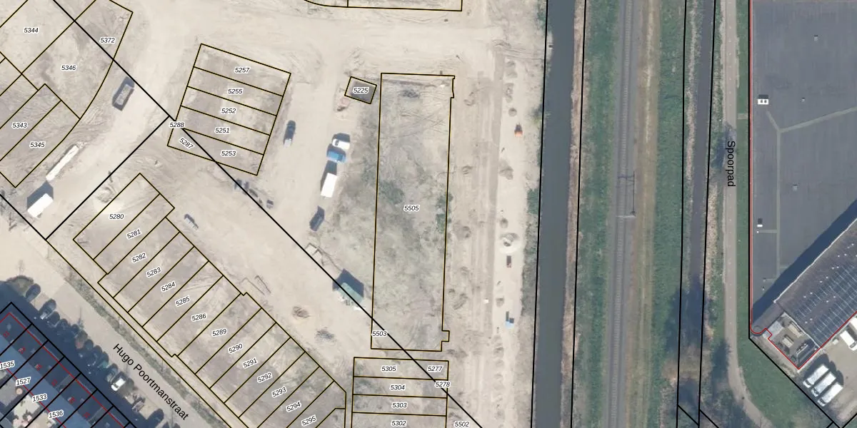 Het perceel waarop het adres ligt is WDV01-E-5505. De afkorting 'WDV01' staat voor kadastrale gemeente Waddinxveen. De gemiddelde perceelgrootte in Waddinxveen is 2158,97 m². Dit perceel is kleiner: de perceeloppervlakte bedraagt 1059 m². De grootste perceeloppervlakte in de kadastrale gemeente is 49,8 ha. De kleinste oppervlakte bedraagt 0 m². Op het perceel zijn 33 adressen aanwezig. In de Basisregistratie Kadaster (BRK) werden de grenzen van het perceel geregistreerd op 13-01-2026.