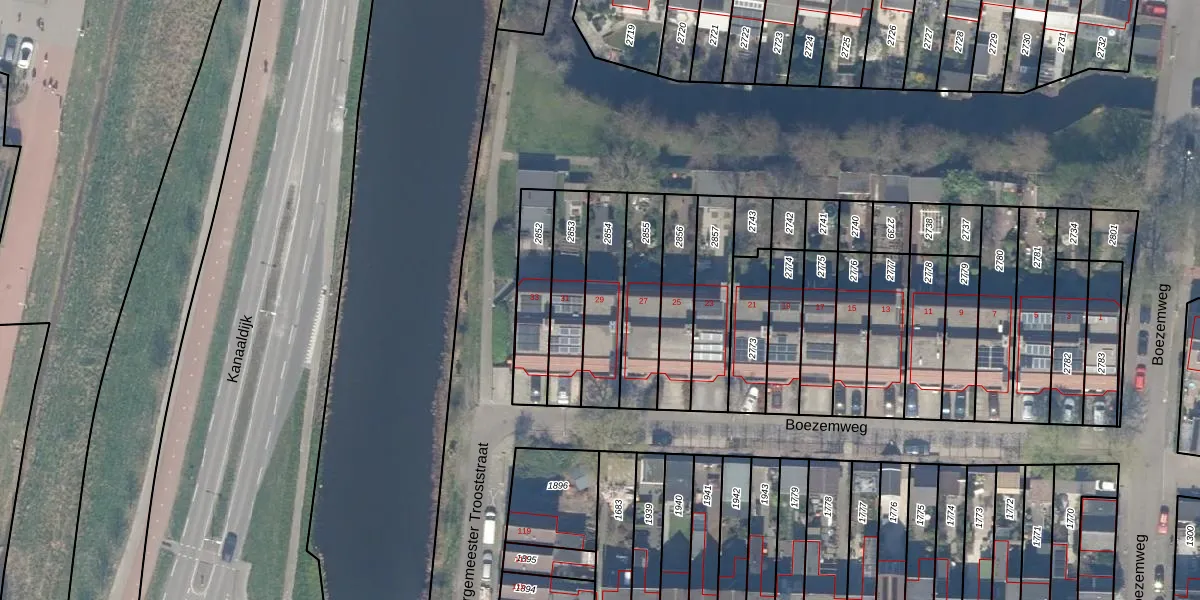 Gebruik de zoekbalk of klik op een perceel voor informatie over de adressen binnen dit perceel.