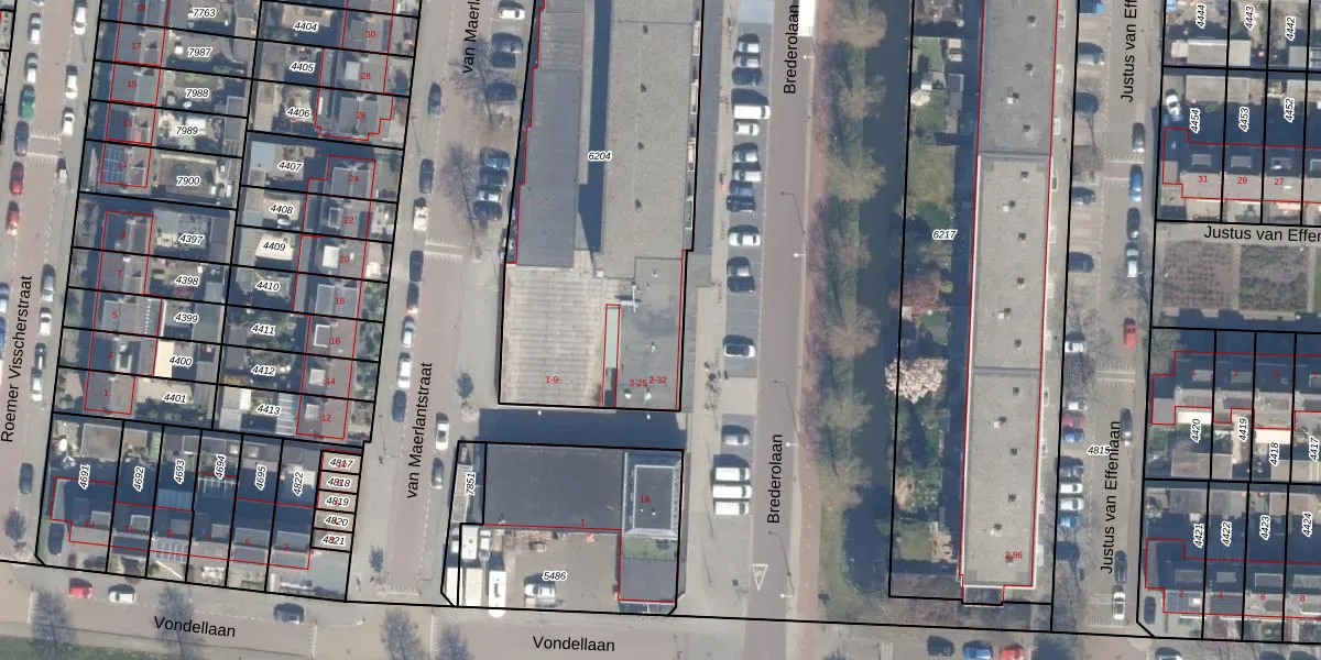 Brederolaan 3 is gelegen op kadastraal perceel WDV01B6204. Deze kadastrale aanduiding is uniek en wordt gebruikt door het Kadaster om eigendomsrechten en andere zakelijke rechten vast te leggen. Het perceel maakt onderdeel uit van de kadastrale gemeente Waddinxveen.