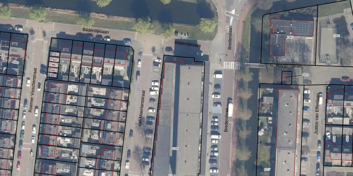 Brederolaan 31 is gelegen op kadastraal perceel WDV01B6204. Deze kadastrale aanduiding is uniek en wordt gebruikt door het Kadaster om eigendomsrechten en andere zakelijke rechten vast te leggen. Het perceel maakt onderdeel uit van de kadastrale gemeente Waddinxveen.