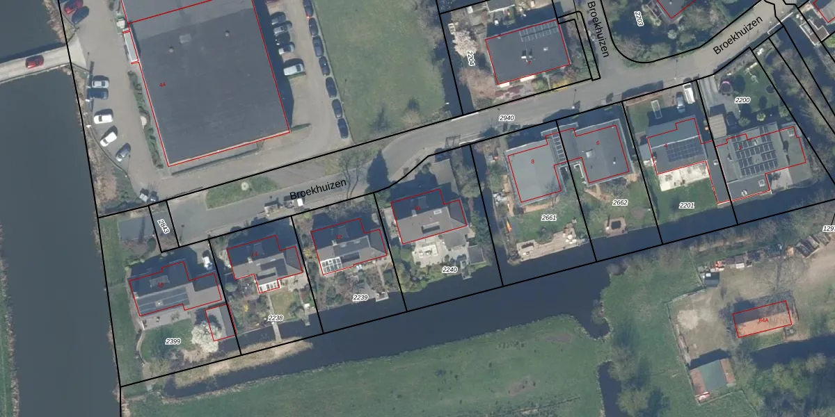 Broekhuizen 10 is gelegen op kadastraal perceel WDV01F2240. Deze kadastrale aanduiding is uniek en wordt gebruikt door het Kadaster om eigendomsrechten en andere zakelijke rechten vast te leggen. Het perceel maakt onderdeel uit van de kadastrale gemeente Waddinxveen.