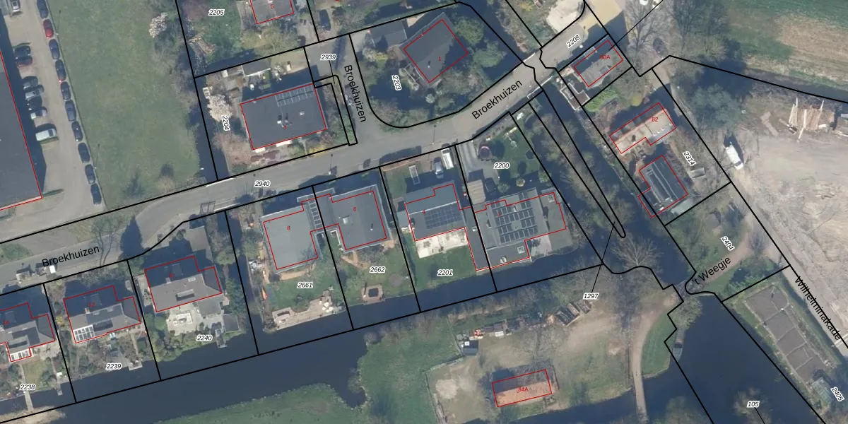 Gebruik de zoekbalk of klik op een perceel voor informatie over de adressen binnen dit perceel.