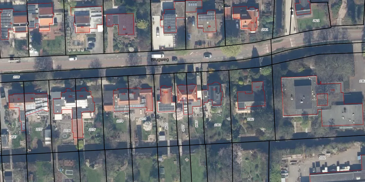 Brugweg 111 is gelegen op kadastraal perceel WDV01G2246. Deze kadastrale aanduiding is uniek en wordt gebruikt door het Kadaster om eigendomsrechten en andere zakelijke rechten vast te leggen. Het perceel maakt onderdeel uit van de kadastrale gemeente Waddinxveen.