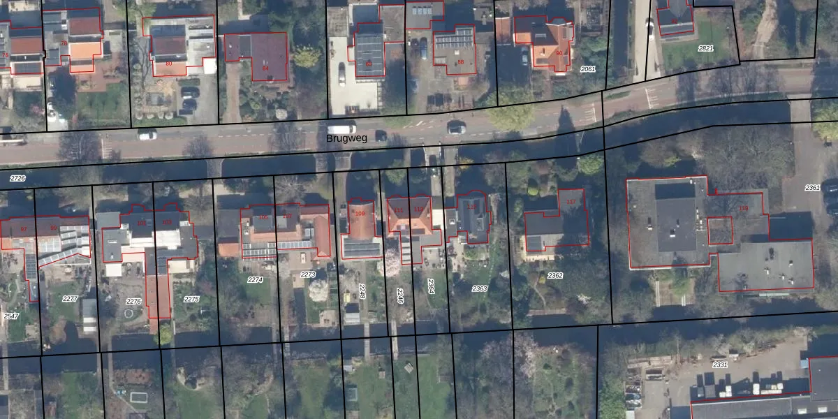 Brugweg 113 is gelegen op kadastraal perceel WDV01G2364. Deze kadastrale aanduiding is uniek en wordt gebruikt door het Kadaster om eigendomsrechten en andere zakelijke rechten vast te leggen. Het perceel maakt onderdeel uit van de kadastrale gemeente Waddinxveen.