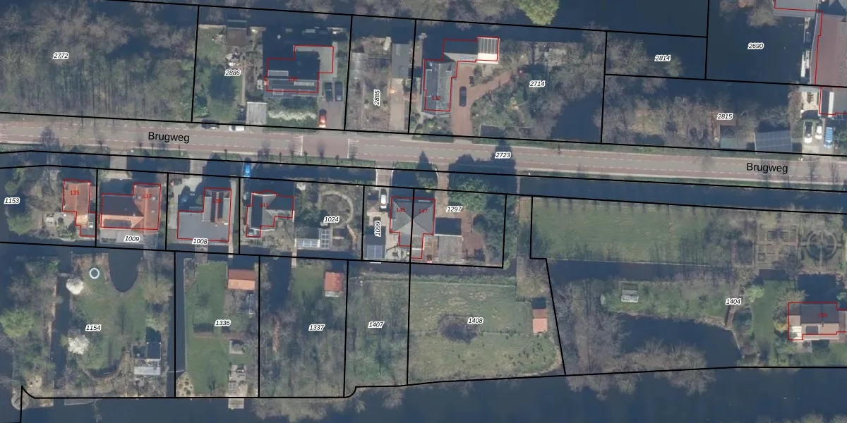 Brugweg 147 is gelegen op kadastraal perceel WDV01H1297. Deze kadastrale aanduiding is uniek en wordt gebruikt door het Kadaster om eigendomsrechten en andere zakelijke rechten vast te leggen. Het perceel maakt onderdeel uit van de kadastrale gemeente Waddinxveen.