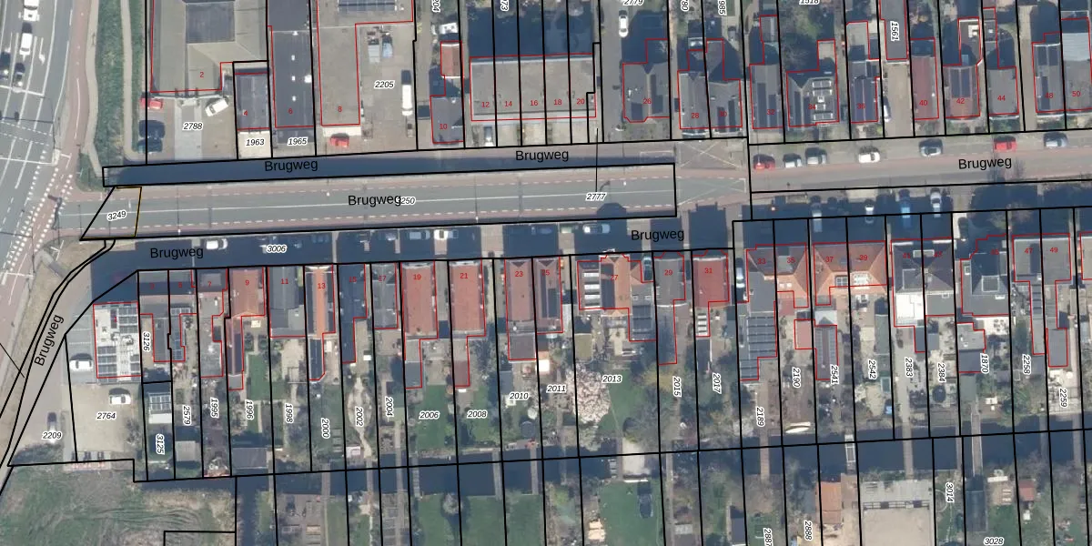 Brugweg 25 is gelegen op kadastraal perceel WDV01G2011. Deze kadastrale aanduiding is uniek en wordt gebruikt door het Kadaster om eigendomsrechten en andere zakelijke rechten vast te leggen. Het perceel maakt onderdeel uit van de kadastrale gemeente Waddinxveen.