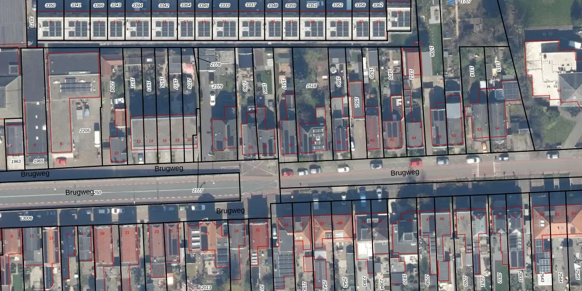 Het perceel waarop Brugweg 32 staat heeft een oppervlakte van 265 m². Dit is een middelgroot perceel. De perceeloppervlakte wordt geregistreerd door het Kadaster. Gedetailleerde informatie over de maten van dit perceel kunt u vinden in het rapport Kadastrale kaart met maatvoering van Brugweg 32.