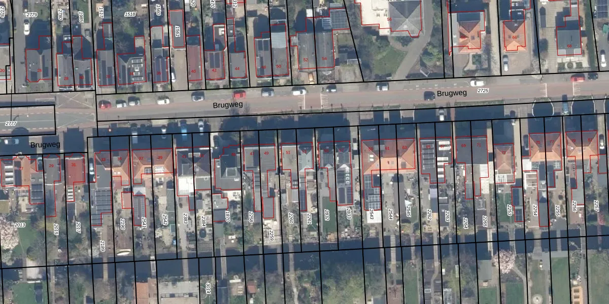 Het perceel waarop Brugweg 53 staat heeft een oppervlakte van 253 m². Dit is een middelgroot perceel. De perceeloppervlakte wordt geregistreerd door het Kadaster. Gedetailleerde informatie over de maten van dit perceel kunt u vinden in het rapport Kadastrale kaart met maatvoering van Brugweg 53.