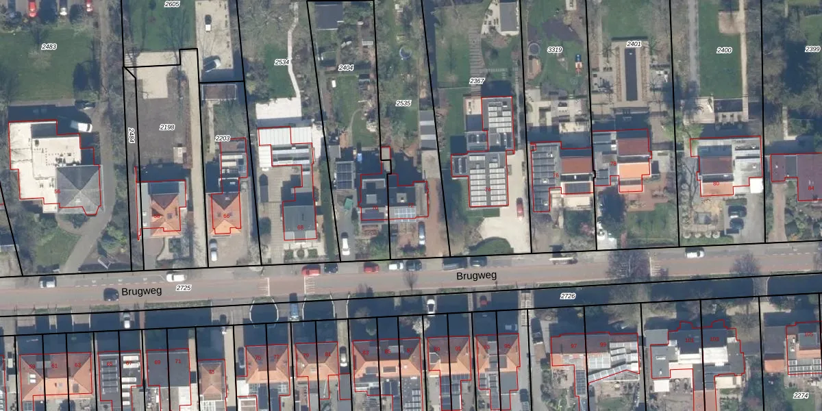Brugweg 72 is gelegen op kadastraal perceel WDV01G2535. Deze kadastrale aanduiding is uniek en wordt gebruikt door het Kadaster om eigendomsrechten en andere zakelijke rechten vast te leggen. Het perceel maakt onderdeel uit van de kadastrale gemeente Waddinxveen.
