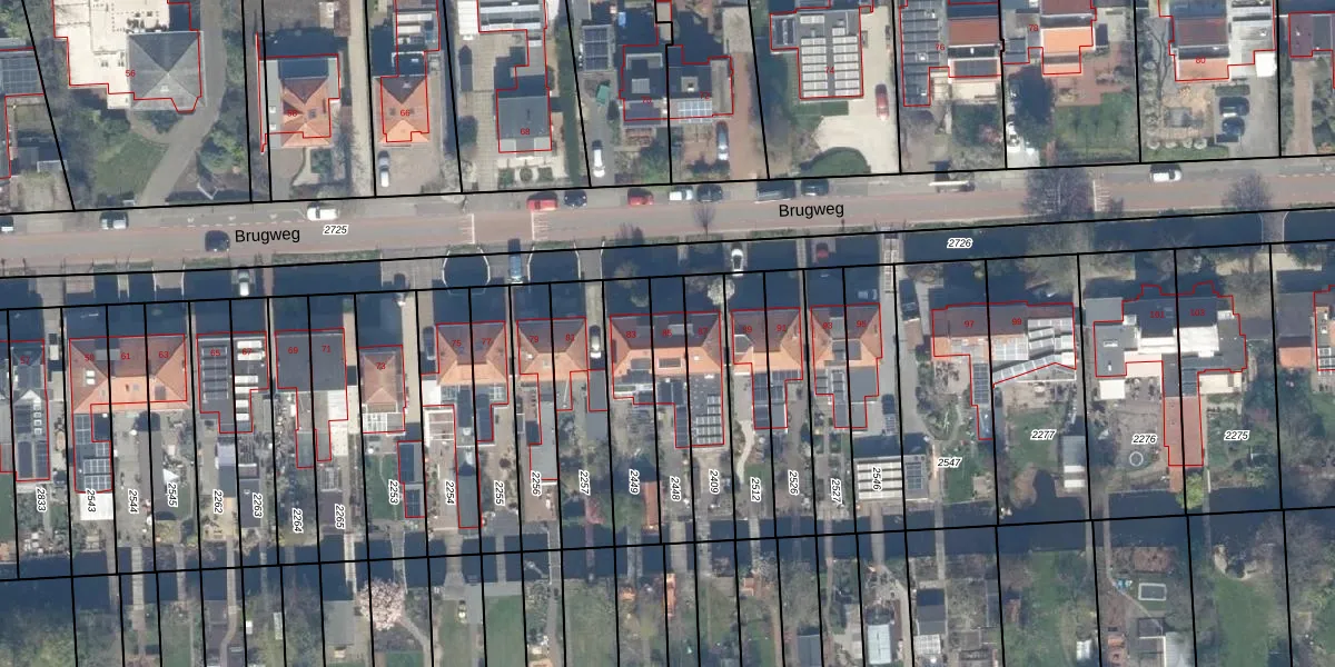 Brugweg 85 is gelegen op kadastraal perceel WDV01G2448. Deze kadastrale aanduiding is uniek en wordt gebruikt door het Kadaster om eigendomsrechten en andere zakelijke rechten vast te leggen. Het perceel maakt onderdeel uit van de kadastrale gemeente Waddinxveen.