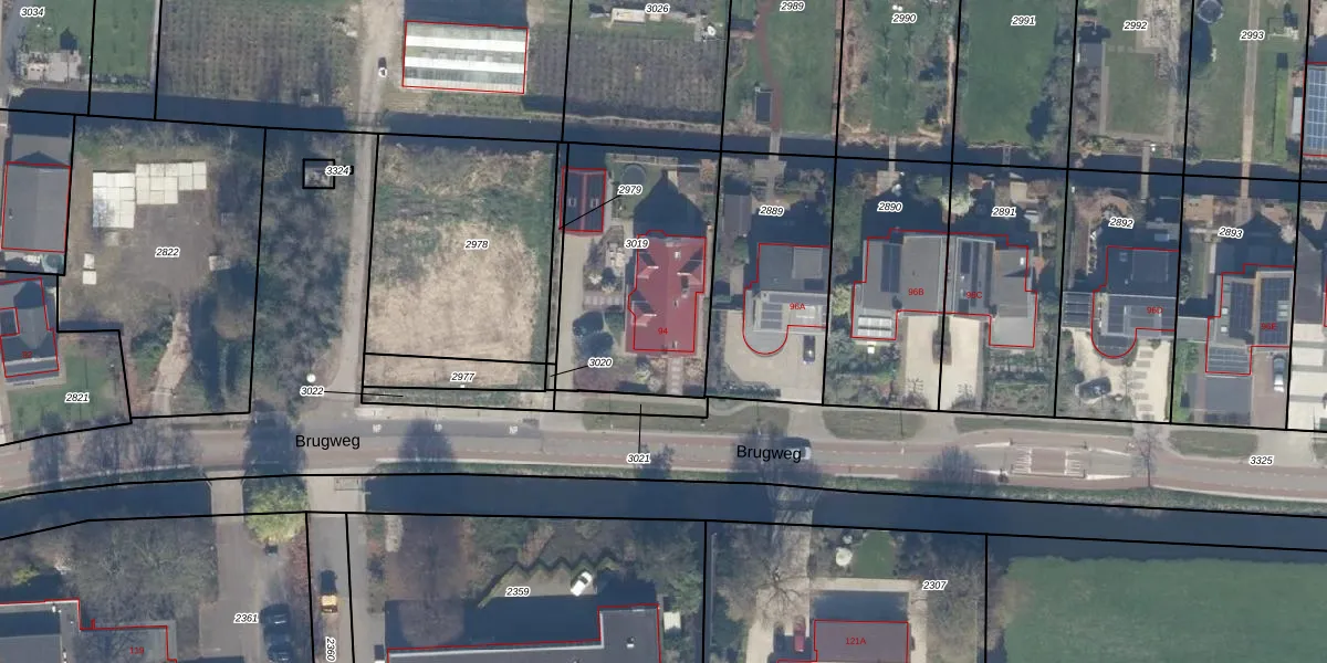 Brugweg 94 is gelegen op kadastraal perceel WDV01G3019. Deze kadastrale aanduiding is uniek en wordt gebruikt door het Kadaster om eigendomsrechten en andere zakelijke rechten vast te leggen. Het perceel maakt onderdeel uit van de kadastrale gemeente Waddinxveen.