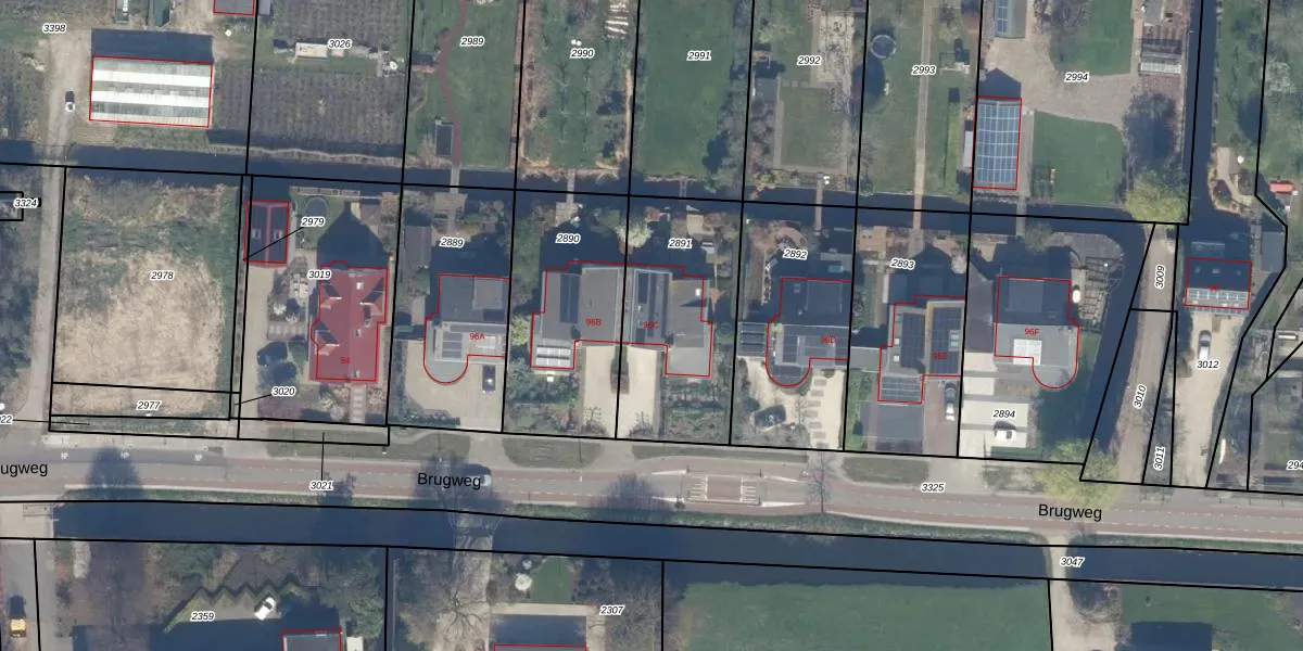 Brugweg 96-C is gelegen op kadastraal perceel WDV01G2891. Deze kadastrale aanduiding is uniek en wordt gebruikt door het Kadaster om eigendomsrechten en andere zakelijke rechten vast te leggen. Het perceel maakt onderdeel uit van de kadastrale gemeente Waddinxveen.