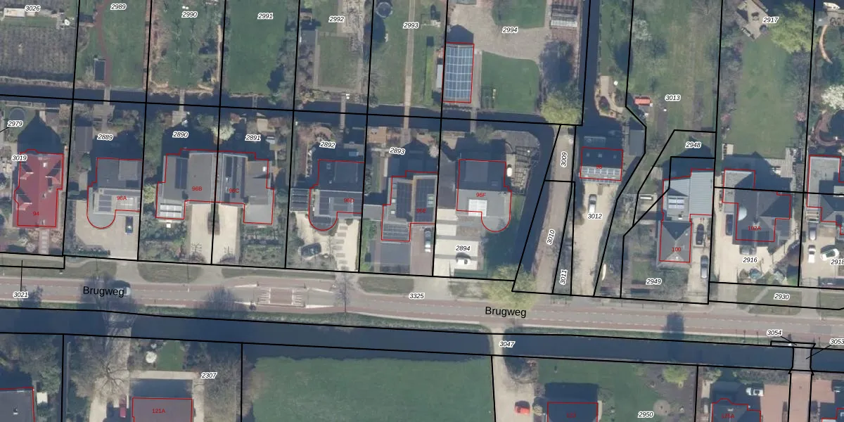 Brugweg 96-E is gelegen op kadastraal perceel WDV01G2893. Deze kadastrale aanduiding is uniek en wordt gebruikt door het Kadaster om eigendomsrechten en andere zakelijke rechten vast te leggen. Het perceel maakt onderdeel uit van de kadastrale gemeente Waddinxveen.