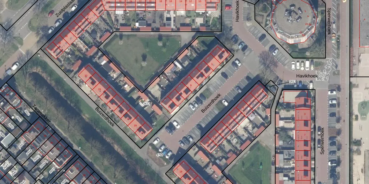 Buizerdhoek 11 is gelegen op kadastraal perceel WDV01C2611. Deze kadastrale aanduiding is uniek en wordt gebruikt door het Kadaster om eigendomsrechten en andere zakelijke rechten vast te leggen. Het perceel maakt onderdeel uit van de kadastrale gemeente Waddinxveen.