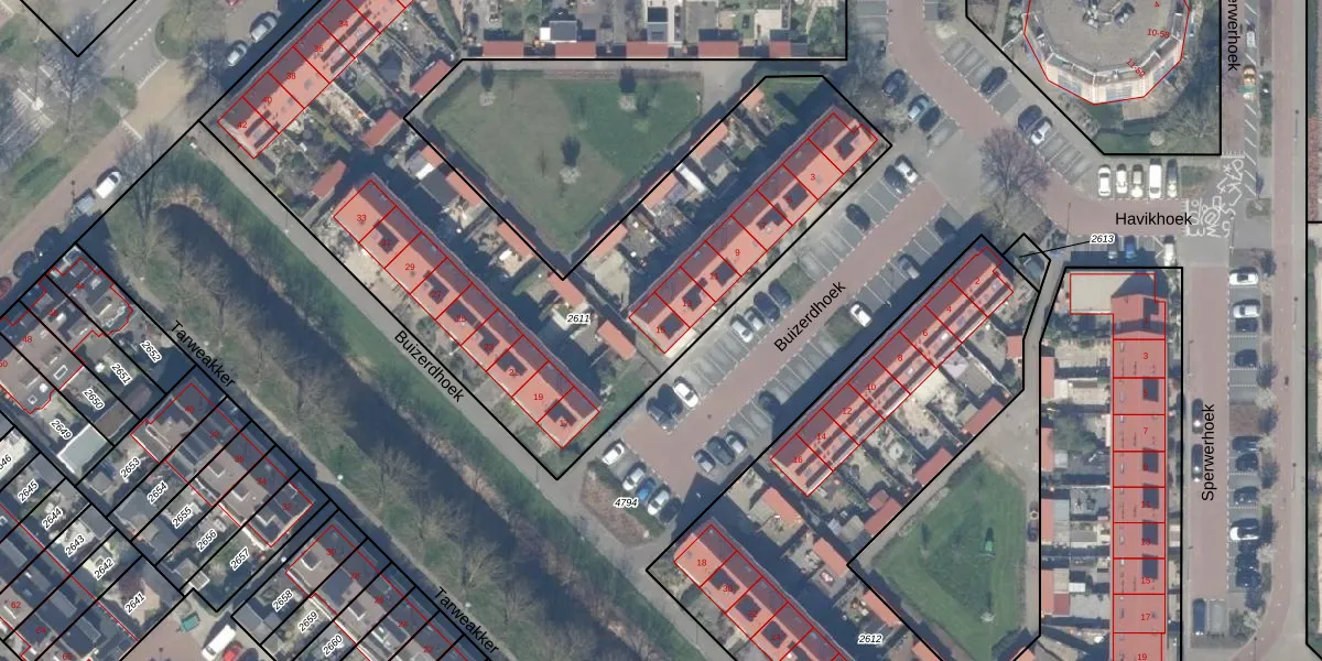 Buizerdhoek 15 is gelegen op kadastraal perceel WDV01C2611. Deze kadastrale aanduiding is uniek en wordt gebruikt door het Kadaster om eigendomsrechten en andere zakelijke rechten vast te leggen. Het perceel maakt onderdeel uit van de kadastrale gemeente Waddinxveen.