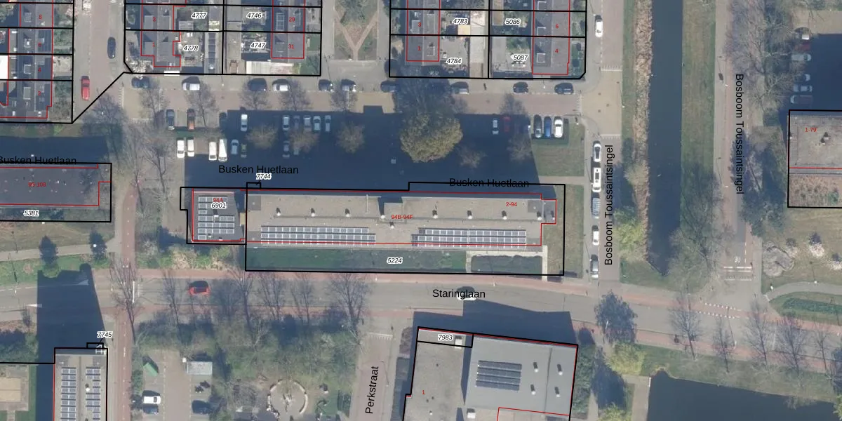 Busken Huetlaan 12 is gelegen op kadastraal perceel WDV01B5224. Deze kadastrale aanduiding is uniek en wordt gebruikt door het Kadaster om eigendomsrechten en andere zakelijke rechten vast te leggen. Het perceel maakt onderdeel uit van de kadastrale gemeente Waddinxveen.