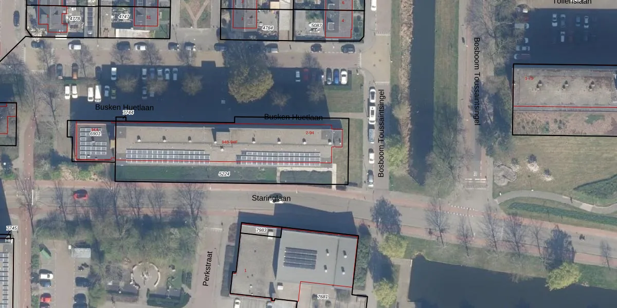 Het perceel waarop Busken Huetlaan 60 staat heeft een oppervlakte van 1540 m². Dit is een zeer groot perceel. De perceeloppervlakte wordt geregistreerd door het Kadaster. Gedetailleerde informatie over de maten van dit perceel kunt u vinden in het rapport Kadastrale kaart met maatvoering van Busken Huetlaan 60.