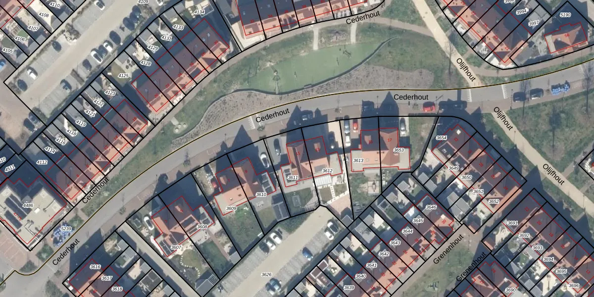 Cederhout 11 is gelegen op kadastraal perceel WDV01E3611. Deze kadastrale aanduiding is uniek en wordt gebruikt door het Kadaster om eigendomsrechten en andere zakelijke rechten vast te leggen. Het perceel maakt onderdeel uit van de kadastrale gemeente Waddinxveen.