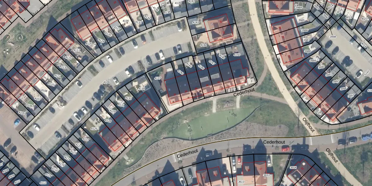 Het perceel waarop Cederhout 34 staat heeft een oppervlakte van 148 m². Dit is een middelgroot perceel. De perceeloppervlakte wordt geregistreerd door het Kadaster. Gedetailleerde informatie over de maten van dit perceel kunt u vinden in het rapport Kadastrale kaart met maatvoering van Cederhout 34.