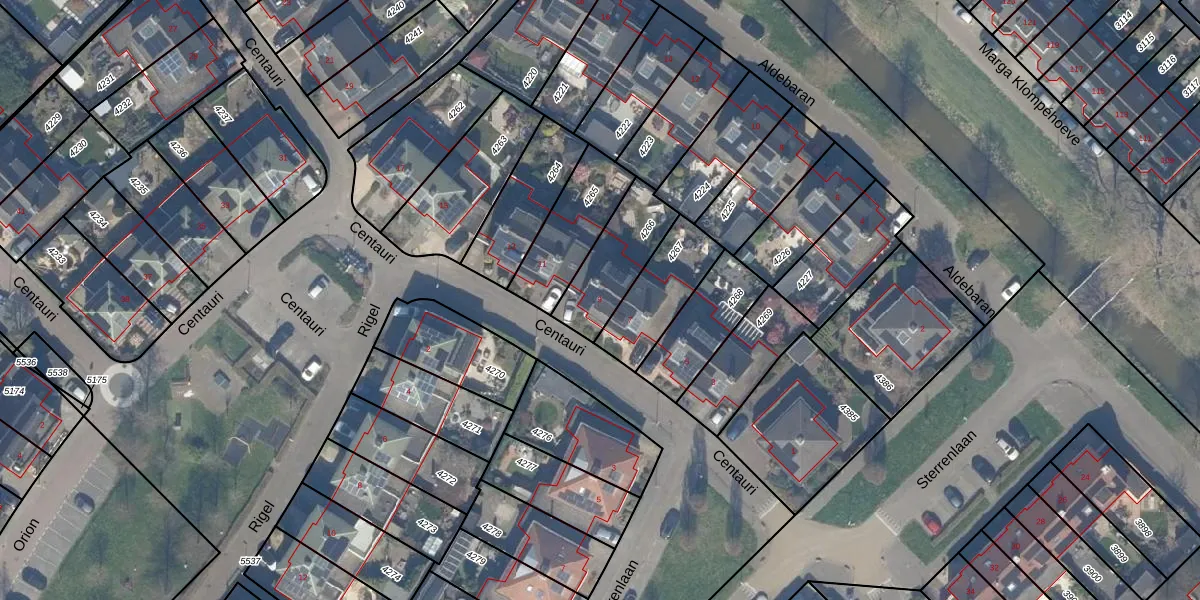 Het perceel waarop Centauri 9 staat heeft een oppervlakte van 239 m². Dit is een middelgroot perceel. De perceeloppervlakte wordt geregistreerd door het Kadaster. Gedetailleerde informatie over de maten van dit perceel kunt u vinden in het rapport Kadastrale kaart met maatvoering van Centauri 9.