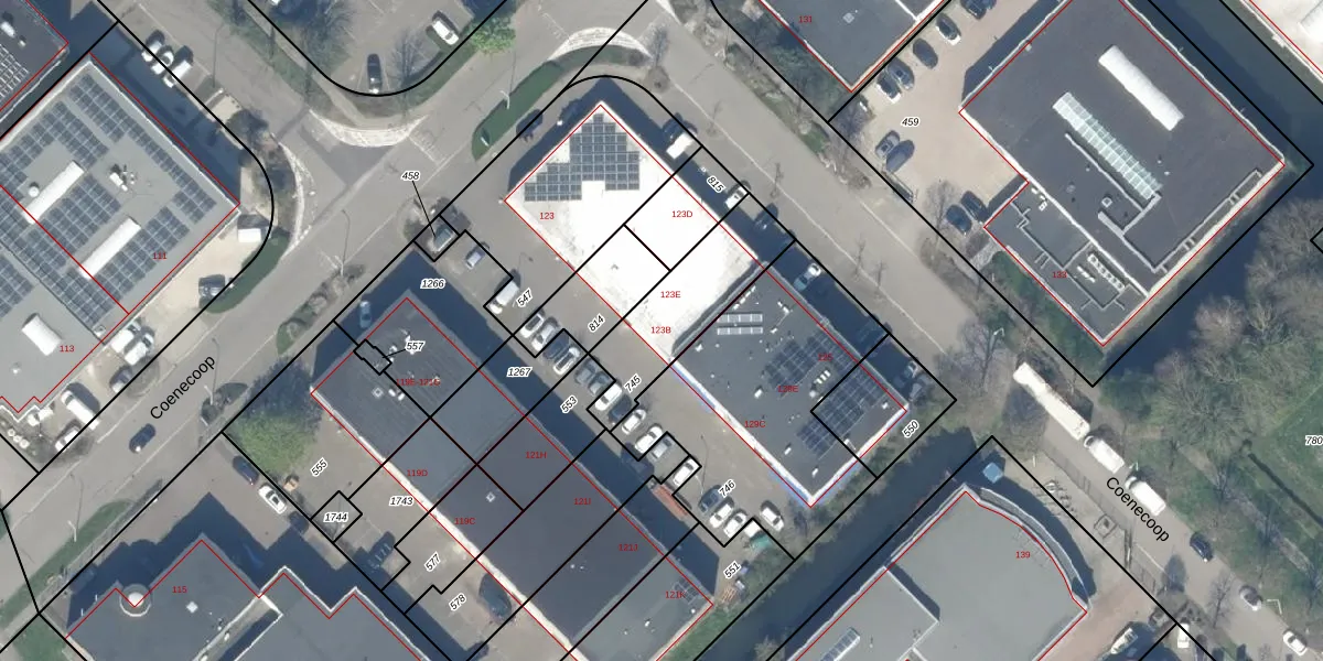 Coenecoop 123-B is gelegen op kadastraal perceel WDV01E745. Deze kadastrale aanduiding is uniek en wordt gebruikt door het Kadaster om eigendomsrechten en andere zakelijke rechten vast te leggen. Het perceel maakt onderdeel uit van de kadastrale gemeente Waddinxveen.