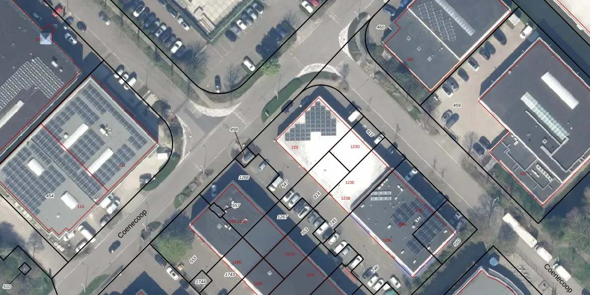 Het perceel waarop Coenecoop 123 staat heeft een oppervlakte van 735 m². Dit is een groot perceel. De perceeloppervlakte wordt geregistreerd door het Kadaster. Gedetailleerde informatie over de maten van dit perceel kunt u vinden in het rapport Kadastrale kaart met maatvoering van Coenecoop 123.