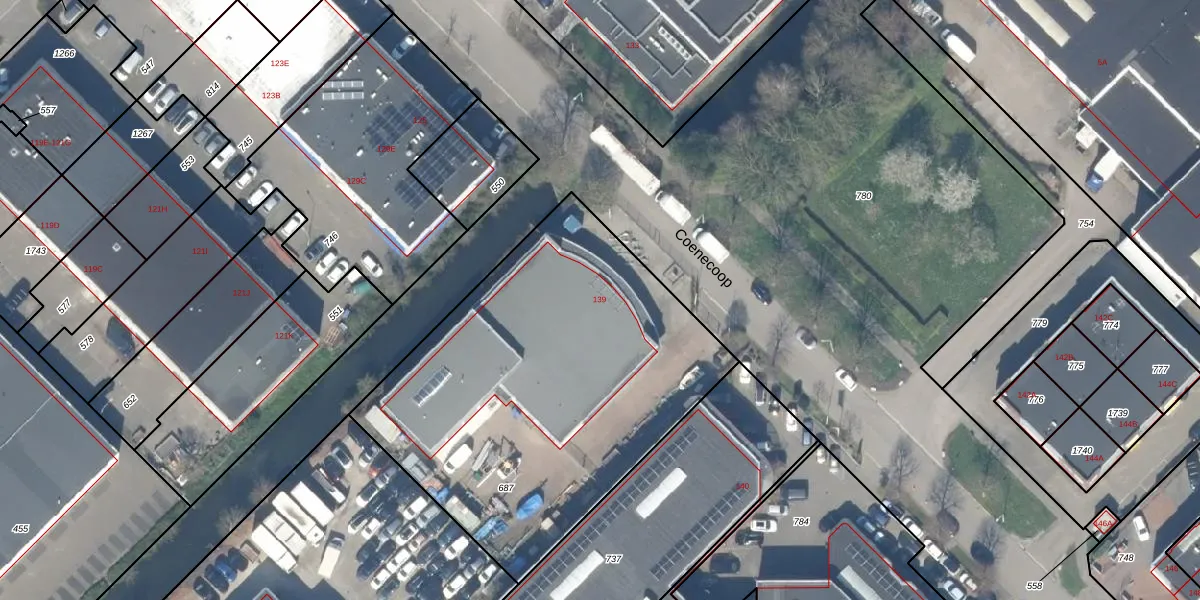 Het perceel waarop Coenecoop 139 staat heeft een oppervlakte van 2080 m². Dit is een zeer groot perceel. De perceeloppervlakte wordt geregistreerd door het Kadaster. Gedetailleerde informatie over de maten van dit perceel kunt u vinden in het rapport Kadastrale kaart met maatvoering van Coenecoop 139.