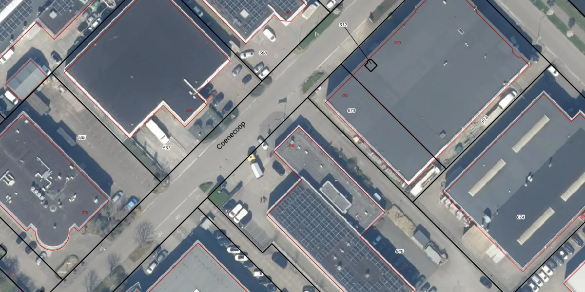 Het perceel waarop Coenecoop 290 staat heeft een oppervlakte van 4405 m². Dit is een zeer groot perceel. De perceeloppervlakte wordt geregistreerd door het Kadaster. Gedetailleerde informatie over de maten van dit perceel kunt u vinden in het rapport Kadastrale kaart met maatvoering van Coenecoop 290.