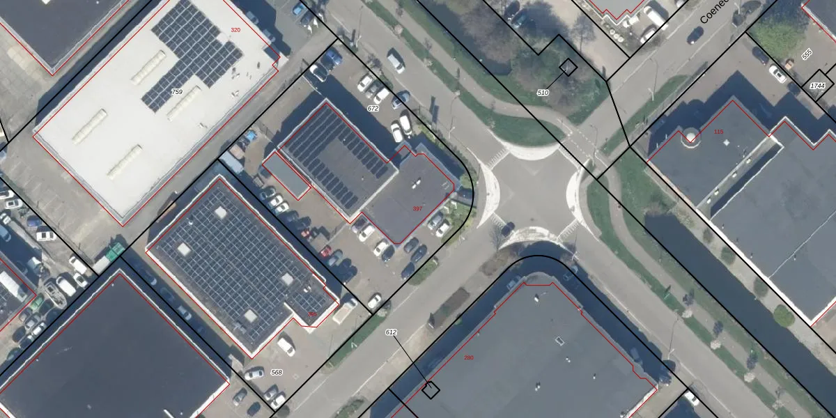 Het perceel waarop Coenecoop 397 staat heeft een oppervlakte van 2126 m². Dit is een zeer groot perceel. De perceeloppervlakte wordt geregistreerd door het Kadaster. Gedetailleerde informatie over de maten van dit perceel kunt u vinden in het rapport Kadastrale kaart met maatvoering van Coenecoop 397.