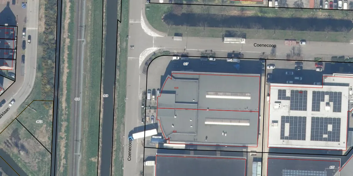 Het perceel waarop Coenecoop 618 staat heeft een oppervlakte van 3530 m². Dit is een zeer groot perceel. De perceeloppervlakte wordt geregistreerd door het Kadaster. Gedetailleerde informatie over de maten van dit perceel kunt u vinden in het rapport Kadastrale kaart met maatvoering van Coenecoop 618.