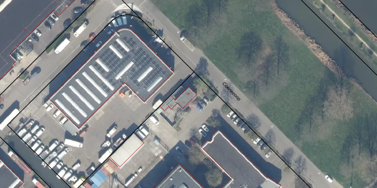 Het perceel waarop Coenecoop 90 staat heeft een oppervlakte van 2,0 ha. Dit is een zeer groot perceel. De perceeloppervlakte wordt geregistreerd door het Kadaster. Gedetailleerde informatie over de maten van dit perceel kunt u vinden in het rapport Kadastrale kaart met maatvoering van Coenecoop 90.