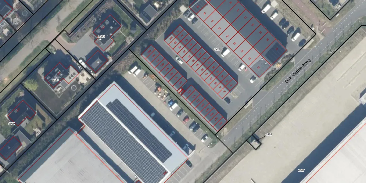 Dirk Verheulweg 118 is gelegen op kadastraal perceel WDV01C6420. Deze kadastrale aanduiding is uniek en wordt gebruikt door het Kadaster om eigendomsrechten en andere zakelijke rechten vast te leggen. Het perceel maakt onderdeel uit van de kadastrale gemeente Waddinxveen.