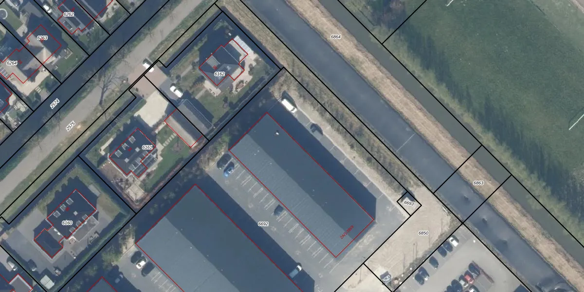 Het perceel waarop het adres ligt is WDV01-C-6692. De afkorting 'WDV01' staat voor kadastrale gemeente Waddinxveen. De oppervlakte van het perceel is 8155 m². Dat is groter dan gemiddeld in Waddinxveen, waar de gemiddelde perceeloppervlakte op 2158,97 m² ligt. Het grootste perceel in de kadastrale gemeente is 49,8 ha. Het kleinste perceel heeft een oppervlakte van 0 m². Er zijn 54 adressen aanwezig op het perceel. De huidige grenzen van het perceel zijn digitaal in de Basisregistratie Kadaster (BRK) geregistreerd op 21-08-2024.