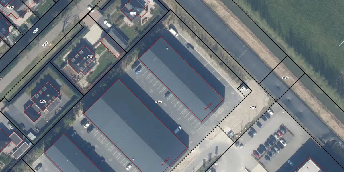 Het perceel waarop het adres ligt is WDV01-C-6692. De afkorting 'WDV01' staat voor kadastrale gemeente Waddinxveen. De oppervlakte van het perceel is 8155 m². Dat is groter dan gemiddeld in Waddinxveen, waar de gemiddelde perceeloppervlakte op 2158,97 m² ligt. Het grootste perceel in de kadastrale gemeente is 49,8 ha. Het kleinste perceel heeft een oppervlakte van 0 m². Er zijn 54 adressen aanwezig op het perceel. De laatste wijziging in het de Basisregistratie Kadaster (BRK) was op 21-08-2024.