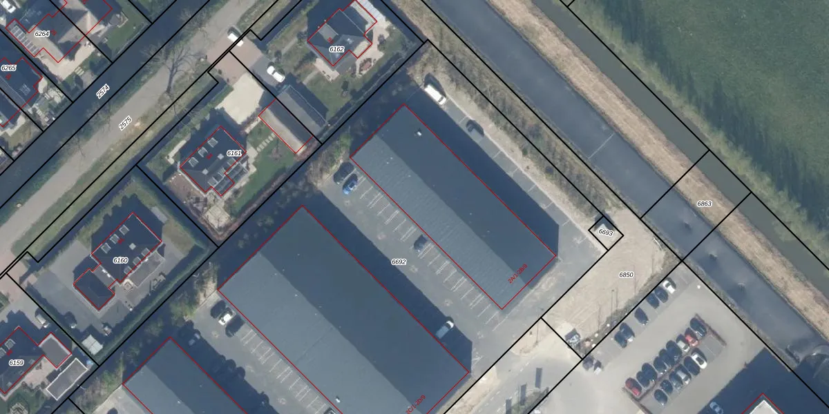Het perceel waarop het adres ligt is WDV01-C-6692. De afkorting 'WDV01' staat voor kadastrale gemeente Waddinxveen. De oppervlakte van het perceel is 8155 m². Dat is groter dan gemiddeld in Waddinxveen, waar de gemiddelde perceeloppervlakte op 2158,97 m² ligt. Het grootste perceel in de kadastrale gemeente is 49,8 ha. Het kleinste perceel heeft een oppervlakte van 0 m². Er zijn 54 adressen aanwezig op het perceel. In de Basisregistratie Kadaster (BRK) werden de grenzen van het perceel geregistreerd op 21-08-2024.