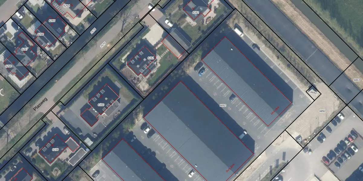 Het perceel waarop het adres ligt is WDV01-C-6692. De afkorting 'WDV01' staat voor kadastrale gemeente Waddinxveen. De oppervlakte van het perceel is 8155 m². Dat is groter dan gemiddeld in Waddinxveen, waar de gemiddelde perceeloppervlakte op 2158,97 m² ligt. Het grootste perceel in de kadastrale gemeente is 49,8 ha. Het kleinste perceel heeft een oppervlakte van 0 m². Op het perceel liggen in totaal 54 adressen. In de Basisregistratie Kadaster (BRK) werden de grenzen van het perceel geregistreerd op 21-08-2024.