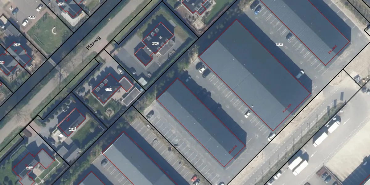 Het perceel waarop het adres ligt is WDV01-C-6692. De afkorting 'WDV01' staat voor kadastrale gemeente Waddinxveen. De oppervlakte van het perceel is 8155 m². Dat is groter dan gemiddeld in Waddinxveen, waar de gemiddelde perceeloppervlakte op 2158,97 m² ligt. Het grootste perceel in de kadastrale gemeente is 49,8 ha. Het kleinste perceel heeft een oppervlakte van 0 m². Er zijn 54 adressen aanwezig op het perceel. De laatste wijziging in het de Basisregistratie Kadaster (BRK) was op 21-08-2024.