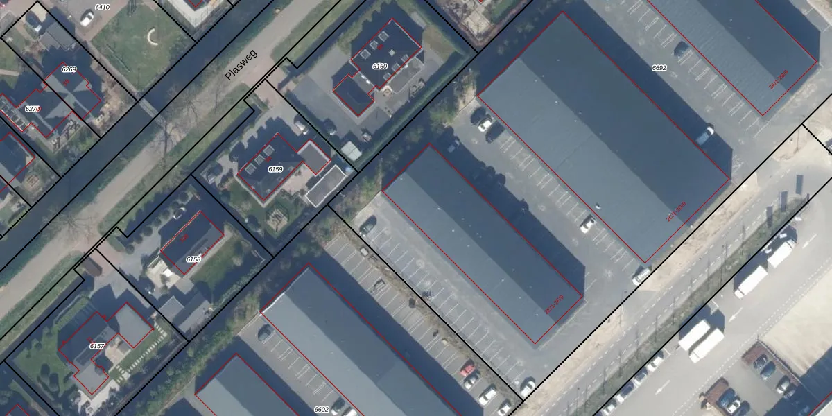 Het perceel waarop het adres ligt is WDV01-C-6692. De afkorting 'WDV01' staat voor kadastrale gemeente Waddinxveen. De oppervlakte van het perceel is 8155 m². Dat is groter dan gemiddeld in Waddinxveen, waar de gemiddelde perceeloppervlakte op 2158,97 m² ligt. Het grootste perceel in de kadastrale gemeente is 49,8 ha. Het kleinste perceel heeft een oppervlakte van 0 m². Op het perceel zijn 54 adressen aanwezig. De laatste wijziging in het de Basisregistratie Kadaster (BRK) was op 21-08-2024.