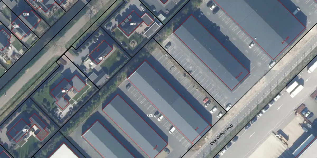 Het perceel waarop Dirk Verheulweg 4-G staat heeft een oppervlakte van 5595 m². Dit is een zeer groot perceel. De perceeloppervlakte wordt geregistreerd door het Kadaster. Gedetailleerde informatie over de maten van dit perceel kunt u vinden in het rapport Kadastrale kaart met maatvoering van Dirk Verheulweg 4-G.